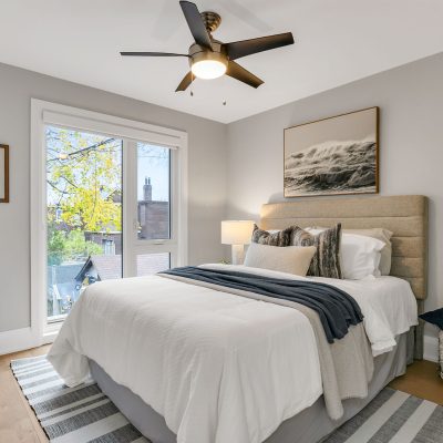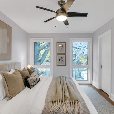 On a large, square lot tucked behind the Moberly neighbours — with its own roll number — sits a modern 2022 laneway home that defies every laneway housing norm: calm, clever, massive, and quietly show-offy. This isn’t a suite or an ADU; it’s a full family home that stretches edge to edge across its own lot. Clean lines, smart flow, and low-key luxury define the space, where open living, dining, and kitchen areas share a wall of windows and multiple walkouts leading to a private, tree-draped backyard built for slow mornings and summer nights. A BBQ hookup, composite decking, power, security, green space, and a quiet canopy of trees make it feel miles away from city life. The boutique-hotel-style primary suite—with a deep tub and proper walk-in shower—overlooks the yard and is one of three full-size bedrooms that make this home surprisingly generous. An open kitchen with breakfast bar, main-floor powder room, and radiant-heated floors keep things practical, cozy, and polished. Energy-efficient materials, smart-home tech, and thoughtful security make it as functional as it is good-looking. From the lane, a double-width remote roll-up door opens to an interlocked courtyard with parking for two, concealed storage sheds, and direct access to all of the property’s gardens. You’ll feel secluded here—yet East Lynn Park, Woodbine subway stop, and the buzz of Danforth Mosaic are just around the corner.