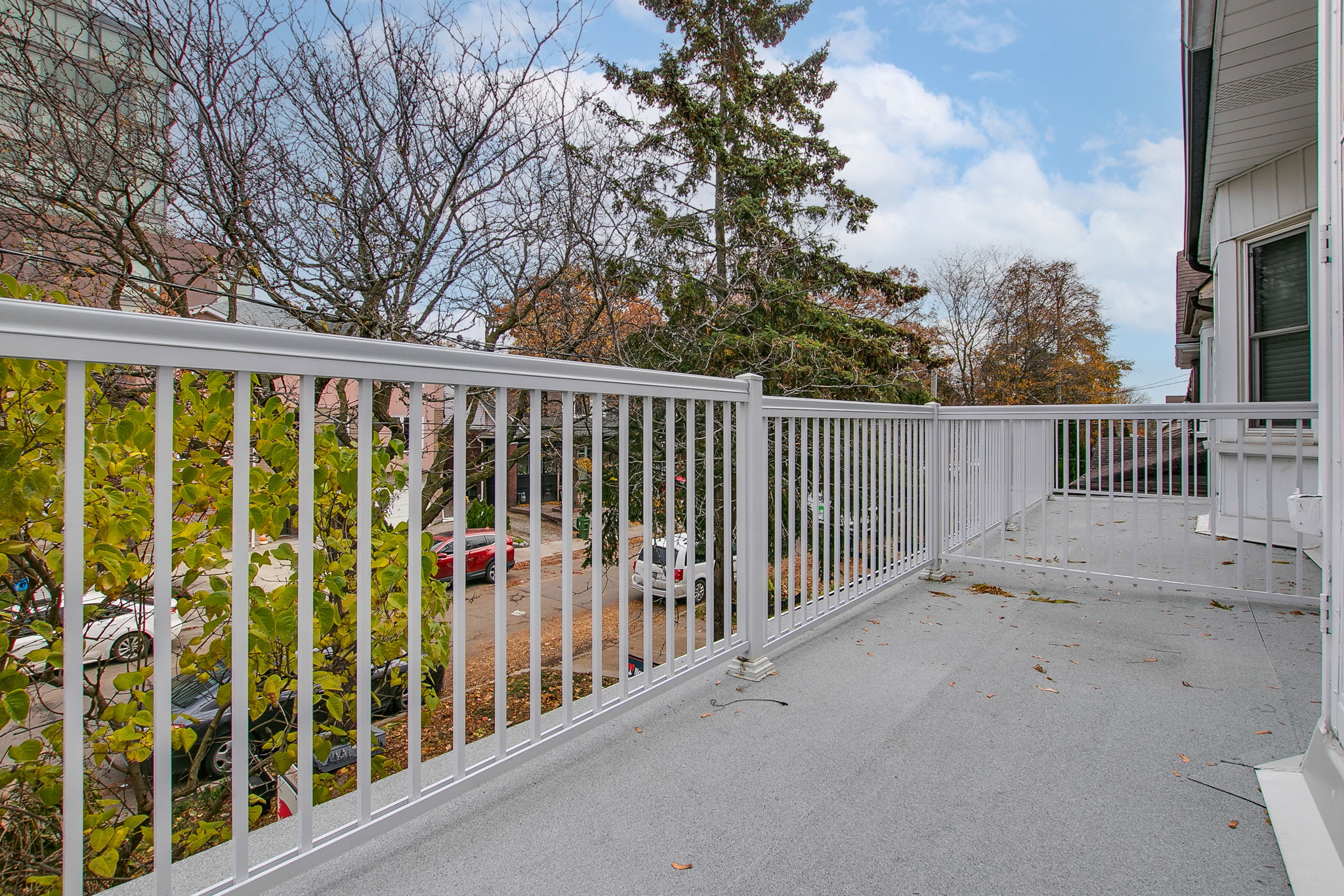 Covered front porch with railing