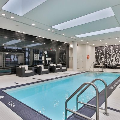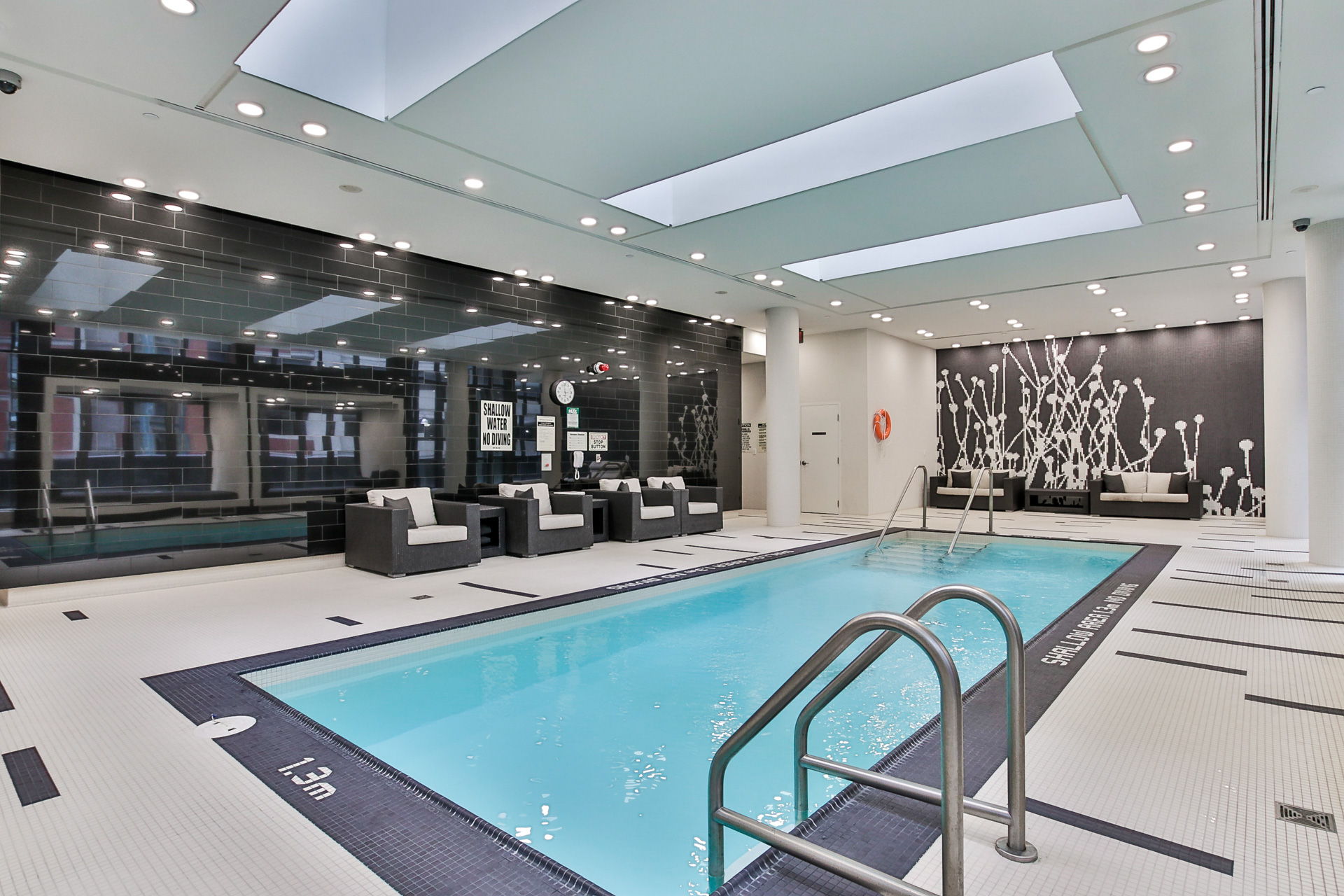 This is a well-run building with excellent amenities—concierge, gym, indoor pool, rooftop garden, party room—and a reputation for quiet, comfortable city living. The suite includes both parking and a locker (a rarity in the core), and the building is pet-friendly.